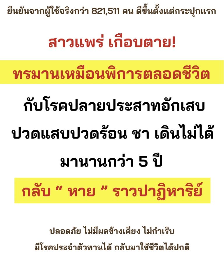 สวัสดีคะ ชื่อ แหม่ม น่ะคะ อายุ 51 ปี เป็นคนแพร่คะ วันนี้เราอยากจะมาแชร์ประสบการณ์ของตัวเอง เล่าย้อนกลับไปเมื่อ 5 ปีที่แล้วคะ พี่เคยป่วยเป็นโรคปลายประสาทอักเสบ แต่ตอนนี้หายเป็นปกติแล้ว พี่มีอาการ ชามือชาเท้า เจ็บแปล๊บเหมือนเข็มทิ่ม ปวดแสบปวดร้อน ชาแทบตลอดเวลา จนนอนหลับไม่ได้ แขนขาไม่มีแรง กลางคืนจะเป็นหนักมาก ซื้อยามาทานก็ไม่ดีขึ้น