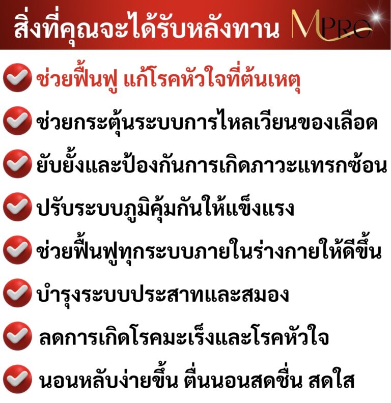 แต่เราโชคดีที่เพื่อนของลูกชายแนะนำให้ทานสมุนไพรสกัดจากธรรมชาติที่ชื่อ MPro เพราะคุณแม่เขาก็มีอาการเหมือนเรา แถมหนักกว่าเราอีก ตอนเป็นถึงขั้นหัวใจเต้นผิดจังหวะ และต้องไปกายภาพบำบัดด้วยเครื่องสัปดาห์ละ 2-3 ครั้ง รักษากับหมอดังๆมาเยอะมาก แต่ก็ไม่หาย เขายังทานแล้วหายเป็นปกติ เราเลยสั่งชุดโปร 2 แถม 1 มาลองทาน