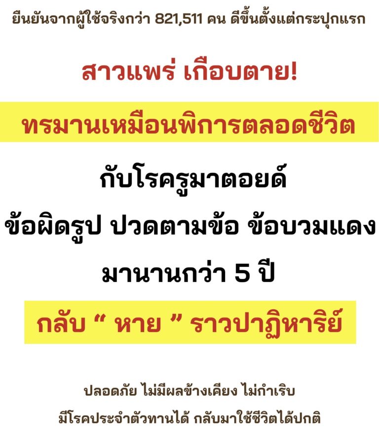 สวัสดีคะ ชื่อ แหม่ม น่ะคะ อายุ 51 ปี เป็นคนแพร่คะ วันนี้เราอยากจะมาแชร์ประสบการณ์ของตัวเอง เล่าย้อนกลับไปเมื่อ 5 ปีที่แล้วคะ พี่เคยป่วยเป็นโรครูมาตอยด์ แต่ตอนนี้หายเป็นปกติแล้ว พี่มีอาการ ปวดตามข้อนิ้ว ข้อมือ ข้อเท้า บวมแดง นิ้วล็อค ข้อฝืดตึง เคลื่อนไหวลำบาก เดินไม่ได้ ซื้อยามาทานก็ไม่ดีขึ้น